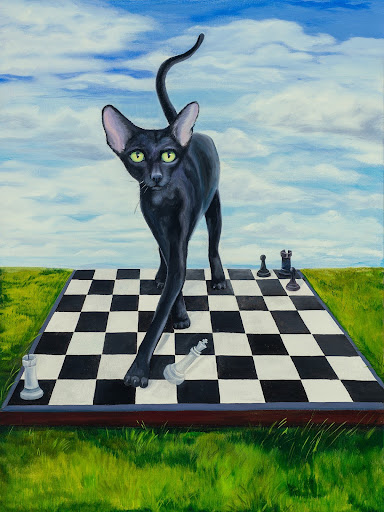 My paintings are described as eclectic and imaginative. The focus of my work revolves around portraits of animals or people incorporated with other fun elements. Both my oil paintings and mixed media paintings let the viewer explore their imagination.
